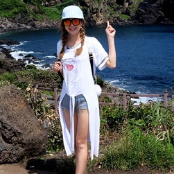 Áo thun dáng dài với đường xẻ tà độc đáo mang đến nét cá tính cho set trang phục của Minh Hằng. |