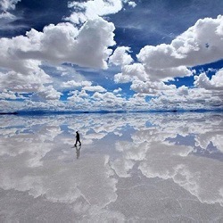 Salar de Uyuni hay Salar de Tunupa là tên của cánh đồng muối lớn nhất thế giới nằm tại Bolivia. Hồ muối cạn này có diện tích 10.582 km2, gần dãy Andes với độ cao 3.650 mét. Trong mùa mưa, mặt hồ muối lớn nhất thế giới trở thành gương phản xạ lớn tương ứng. Salar được tạo ra khi một số hồ thời tiền sử nhập thành một chiếc hồ khổng lồ. |