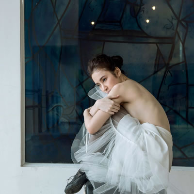 Lấy ý tưởng từ hình ảnh nhân vật chính trong phim 'Thiên nga đen', Angela Phương Trinh đã thực hiện loạt ảnh ghi lại khoảnh khắc trong phòng tập. Khi làm thiên nga trắng, cô lột tả vẻ đẹp mong manh, miệt mài tập múa và ấp ủ giấc mơ được tỏa sáng trên sân khấu.