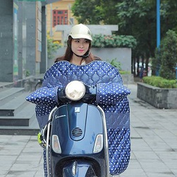 Trên Facebook, nhiều cô gái chia sẻ hình ảnh diện "áo khoác chăn bông" và tự tin đi xe máy. Được quảng cáo là sẽ chắn gió cho cả người ngồi sau nên chiếc áo rất được yêu thích khi đèo trẻ nhỏ. |