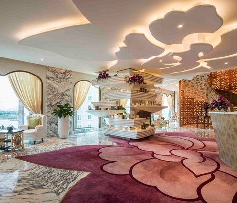 Nội thất do các công ty của Italy thiết kế theo phong cách quý tộc. Trong hình là sảnh khách sạn tại lầu 7. |