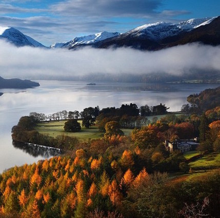 | Bức ảnh tuyệt đẹp do Malcolm Blenkey chụp ở Ullswater, Cumbria, vào một buổi sớm phủ sương với các đỉnh núi tuyết soi bóng xuống mặt hồ. |