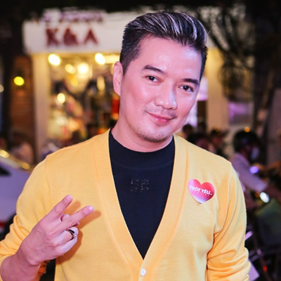 Nam ca sĩ diện áo vàng nổi bật đến dự buổi công chiếu phim "Trót yêu" do Việt Trinh đóng vai chính kiêm đạo diễn tại TP HCM.