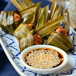 Gà gói lá dứa đúng kiểu Thái từ hình dáng đến mùi vị
