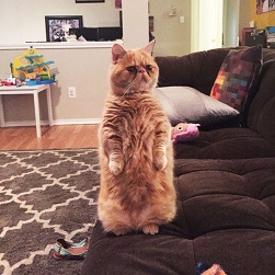 Mèo George với khuôn mặt cáu kỉnh và thích đứng bằng hai chân.