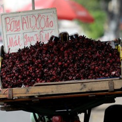 Trên những xe đẩy này, người bán treo sẵn tấm bảng giấy bìa giới thiệu: “Hoa atisô đỏ mát gan, bổ máu, giải nhiệt”. Những “núi” hoa đỏ thẫm này thu hút sự chú ý, nhiều người tấp xe vào hỏi mua. Ngoài hoa atisô tươi, người bán còn bán các hũ xirô atisô ngâm đường.