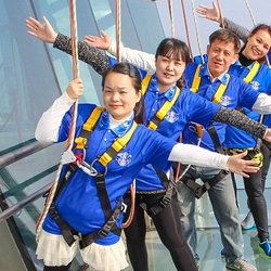 Nhóm trải nghiệm tối đa gồm 5 người, được trang bị đầy đủ thiết bị an toàn và đi cùng hướng dẫn viên. Tại độ cao hơn 300m, các du khách sẽ cảm nhận rõ nét vẻ đẹp của thành phố từ trên cao khi đi bộ xung quanh con đường trong suốt. Cuộc hành trình thường kéo dài chừng 30 phút.