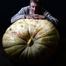 Chú Brian Marshall (Nottingham), người đánh bại các thí sinh khác ở hạng mục bí ngô với trái bí nặng 230 kg.