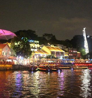 Cuối ngày, thật thú vị khi bạn ngồi trên chiếc thuyền lướt nhẹ nhàng trên sông Singapore, ngắm hoạt động về đêm ở hai bên bờ. Từng làn gió thổi miên man sẽ khiến bạn cảm thấy thư giãn và dễ chịu. Chiếc thuyền chở một dàn đồng ca Singapore với những bài hát đón mừng Giáng sinh rộn vang bên cầu cảng Clarke Quay.