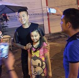 Huấn luyện viên The Voice nán lại chụp ảnh cùng các fan nhí. Kết thúc một ngày làm việc tại Quảng Ninh lúc 23h, anh lên xe trở về Hà Nội.
