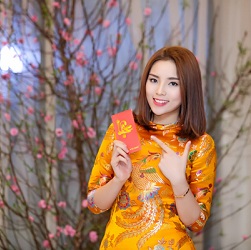 Ngọc Trinh đẹp nền nã trong áo dài đón Tết