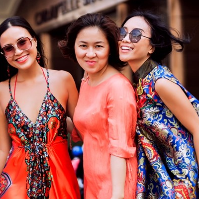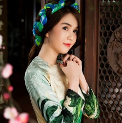 Đoan Trang diện yếm đào dạo phố xuân