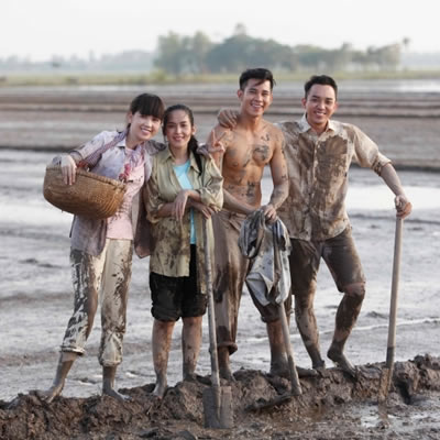 Nữ hoàng đồ lót Ngọc Trinh lấm lem bùn đất trên phim trường