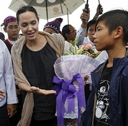 Jolie và Pax Thien lội bùn đất thăm trại tị nạn Myanmar