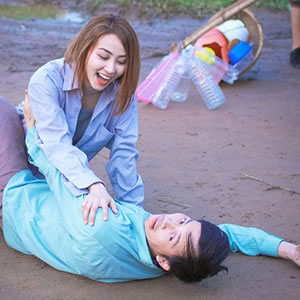 Hoài Linh lao trúng người Ngân Khánh trong phim