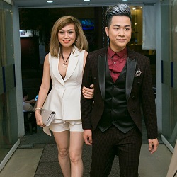 Nam ca sĩ hạnh phúc khi được người yêu tháp tùng và chăm sóc chu đáo trong đêm nhạc tại TP HCM.