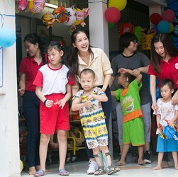 Chi Pu cùng Trung tâm phục hồi chức năng và Trợ giúp trẻ tàn tật TP.HCM phối hợp tổ chức "Trung thu yêu thương" cho các em nhỏ.