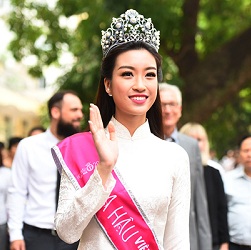 Hoa hậu Mỹ Linh được bố mẹ tháp tùng về thăm trường cũ