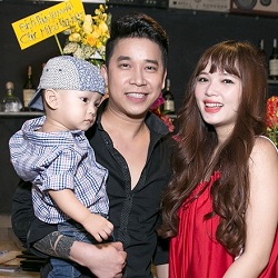 Lê Hoàng vừa chạy bàn vừa bế con thay vợ trẻ