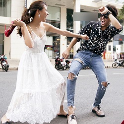 Hoàng Thùy Linh cầm giày cao gót 'choảng' stylist trên phố