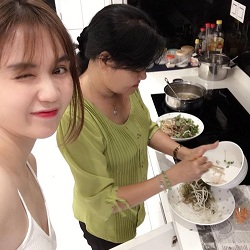 Ngọc Trinh hạnh phúc khi được mẹ kế nấu ăn cho mình