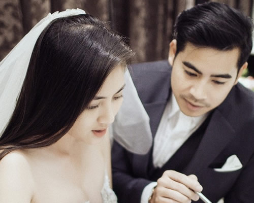 Ông xã diễn viên đưa Ngọc Lan đi thử váy cưới