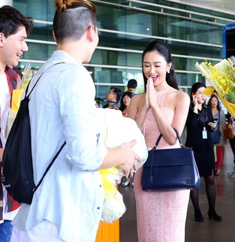 Á hậu Hà Thu ra sân bay đón nhóm nhạc Thái Lan