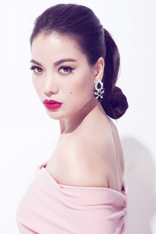 "Nữ hoàng giải trí" ăn vận nữ tính, duyên dáng với mốt áo trễ vai, trong khi đó, giám khảo Vietnam's Next Top Model phối màu trắng đen nâu tinh tế.