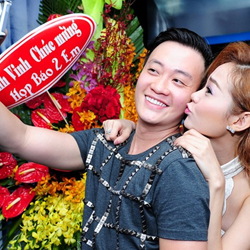 Minh Hằng ôm vai, hôn má Lương Mạnh Hải trong họp báo