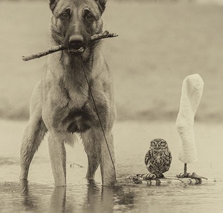 Đôi bạn chó và cú mèo đáng iu gắn bó lạ kỳ
