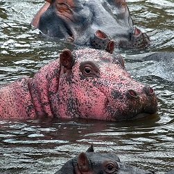 Hà mã có màu hồng nổi bật giữa bầy đàn
