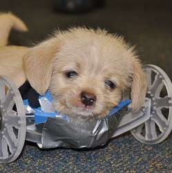 Tuy nhiên, hiện tại chú chó con Tumbles vẫn chưa thể đi vững vàng trên "đôi chân giả" mà buộc phải trải qua một liệu trình vật lý trị liệu để làm quen.