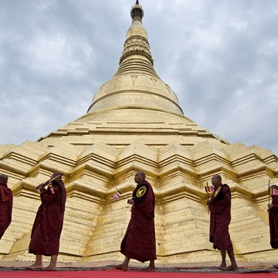 Dát vàng lộng lẫy và được trang trí bằng kim cương, đá quý, ngôi chùa Shwedagon ở Yangon là một trong những công trình Phật giáo đẹp và linh thiêng nhất Myanmar.