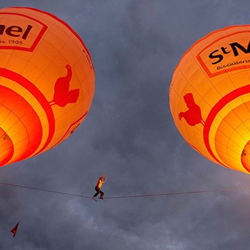 Ấn tượng qua ảnh: Đi trên dây giữa 2 khinh khí cầu