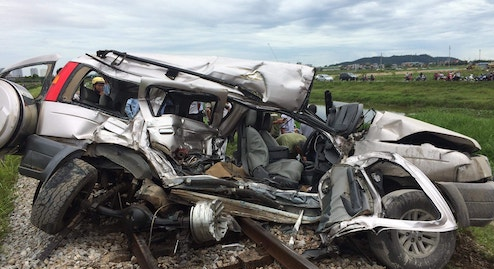 Xe 7 chỗ bị 'vò nát' sau cú đâm của tàu hỏa, 2 người thiệt mạng