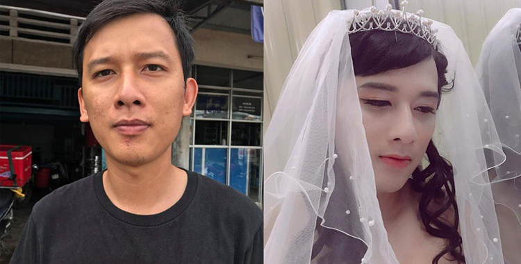 Hô biến chồng thành "cô dâu" xinh đẹp vì không thuê được người mẫu, vợ trẻ khiến dân tình liên tưởng tới điều này